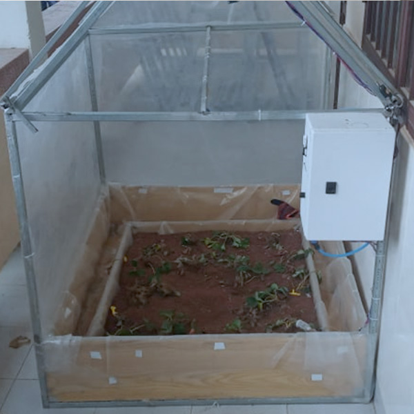 The farm has a water storage channel, which is used to water the leaves of the plants. When the humidity is below 65%, the drop irrigation system will be activated. The lighting and watering/irrigation systems are controlled via website. The roof works with automatic opening and closing depending on the light, temperature and rain sensors.