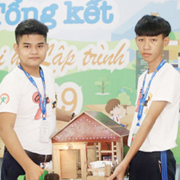 When looking at the container library donated by The Dariu Foundation at his schoolyard, Cuong Tran, 14 years old, told his classmate Phu Nguyen that he wished the container library were movable, so that they could move it from school to school. They decided to develop a movable house as their summer project. Micro:bit is used as the central controlling system to connect and control other external sensors such as lighting, humidity and proximity, and motor servo. A light sensor is used to transfer a signal to the Micro:bit for automatic lighting; a humidity sensor is used for watering, and pumping; a motor servo is utilized for opening/closing the main doors. “Our dream was to make a house that’s able to fly like a drone,” said Cuong Tran.
