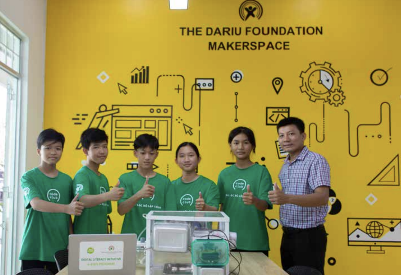 The model included a wood and foam drying house, a Yolobit circuit, signal cables, a DTH20 sensor for temperature and humidity, a fan, a pump, LED lights, an LCD screen, a servo motor for the door and a fire alarm system. This intelligent dryer facilitates the remote control and management of electrical appliances, especially when users are not at home, offering labour-saving benefits and a modern dryinand a modern drying experience.